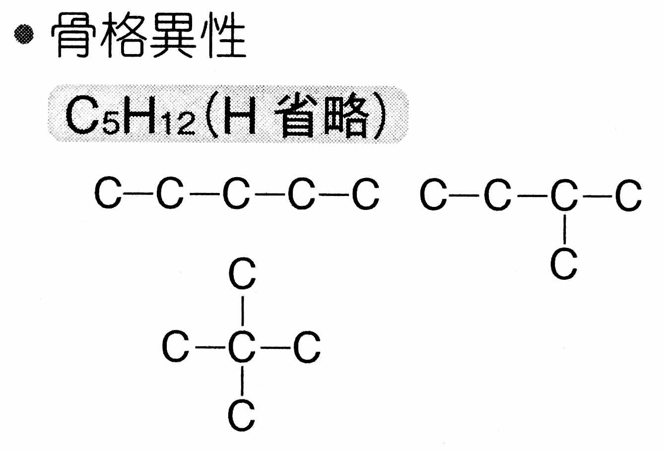 *「骨格異性とは,「枝分かれ」している構造です。┳ のように枝分かれしているものを,( )を使って,3番目の炭素原子のように,