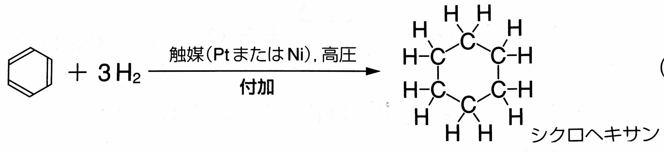 *「ベンゼン環は安定ですが,特別な条件のもとでは,ベンゼン環を失う「付加反応」を起こすこともあります。」