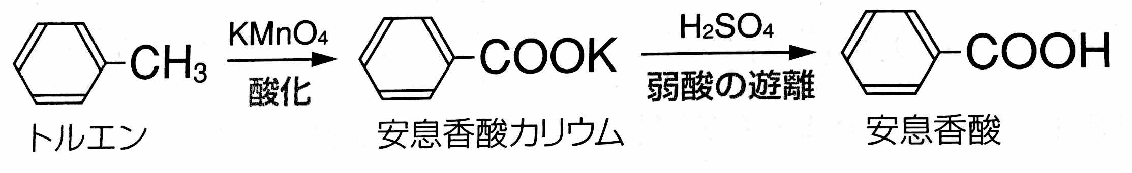 を酸化しても,安息香酸が得られます。」