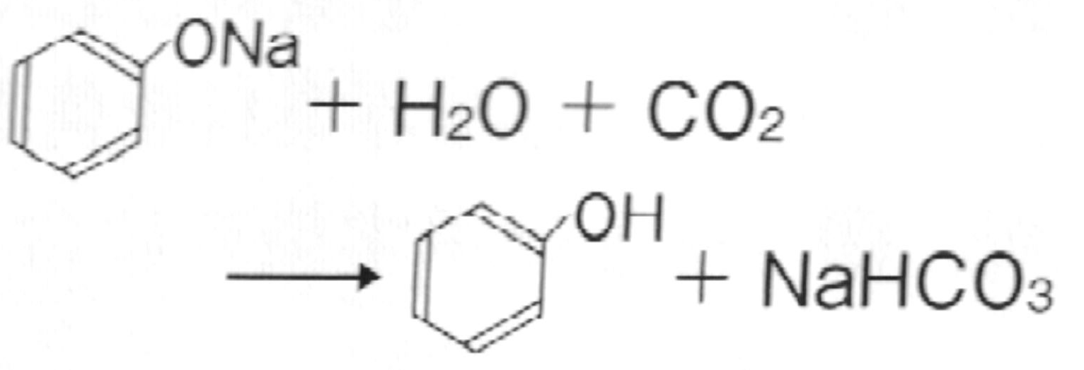 「炭酸水素ナトリウム」よりも,酸性の強い「安息香酸」(フェノールは炭酸よりも弱酸性)が,塩となり,