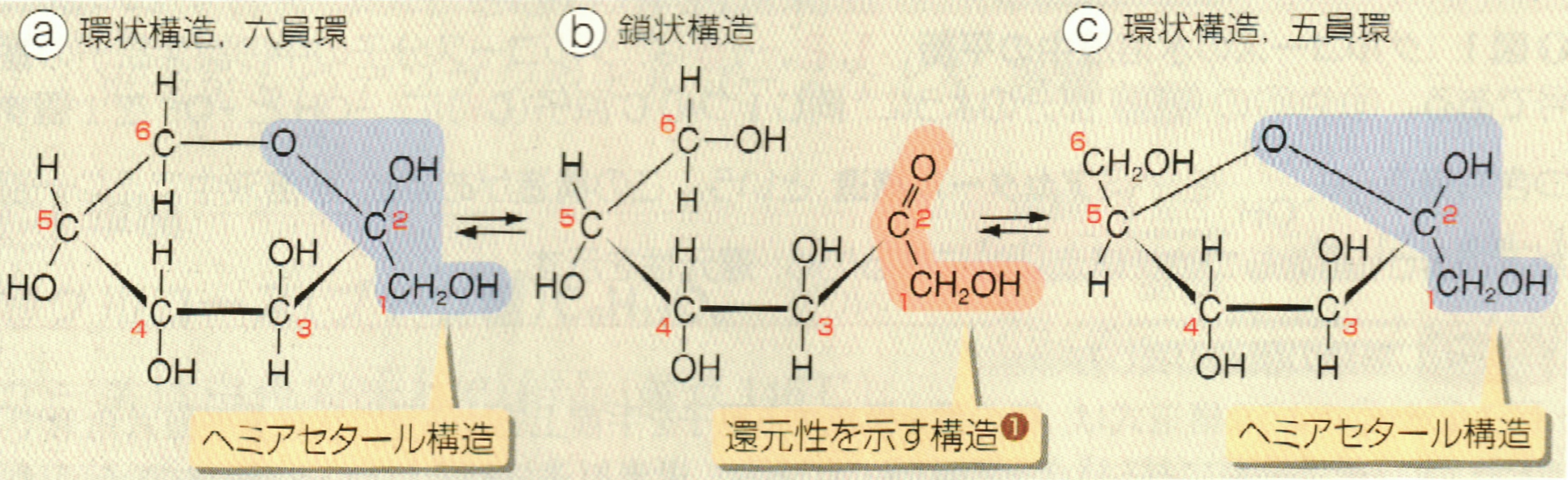 *「上の図のスクロース分子を構成する b の単糖は「β-フルクトース」です。」