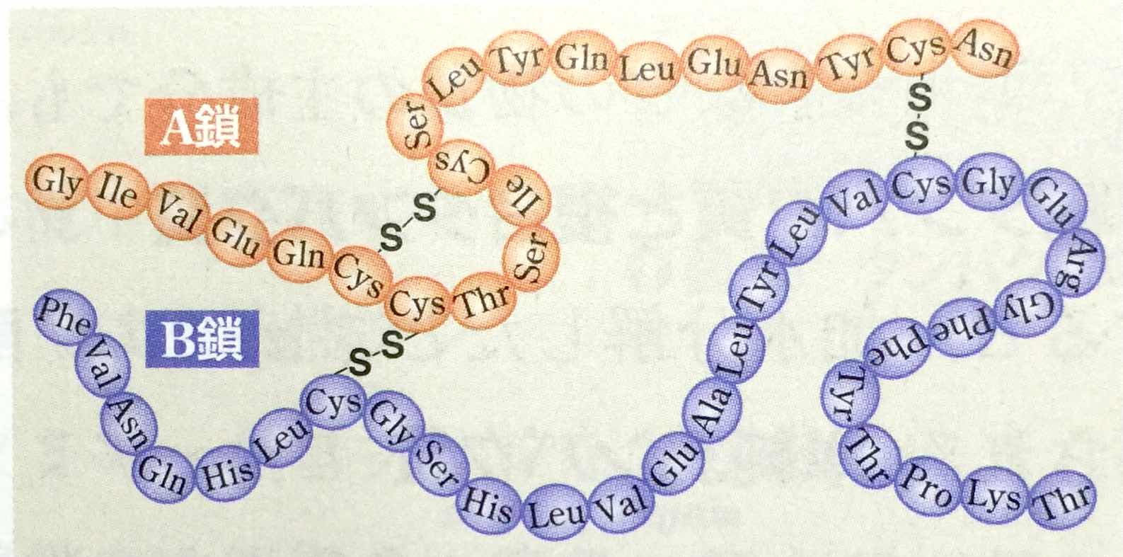 *「上の図は,ヒトのインスリン(血糖値を下げるホルモン)の構造です。