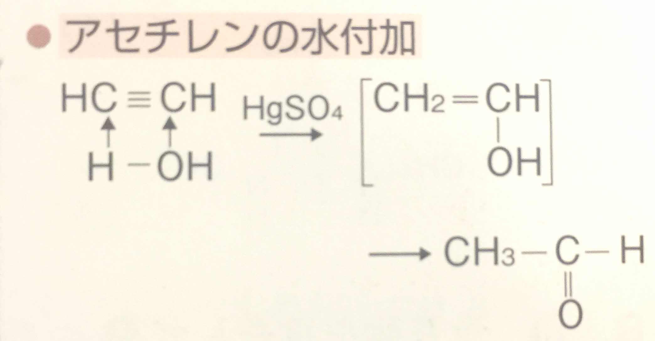 *「アセチレンに水分子を付加すれば,ビニルアルコールができそうですが,そうしないのは,ビニルアルコールが「不安定」で,直ちに「アセトアルデヒド」になるので,単量体として使えないためです。」