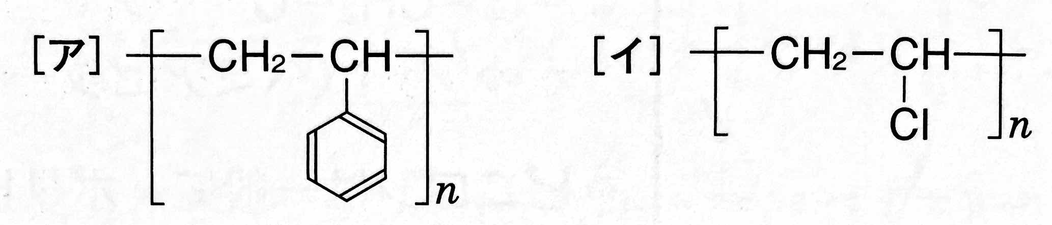 ア:ポリスチレン,イ:ポリ塩化ビニル