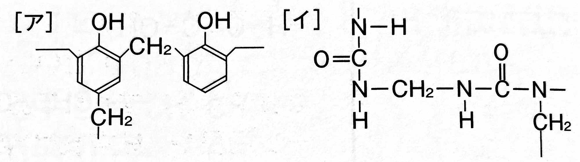 ア:尿素樹脂,イ:メラミン樹脂
