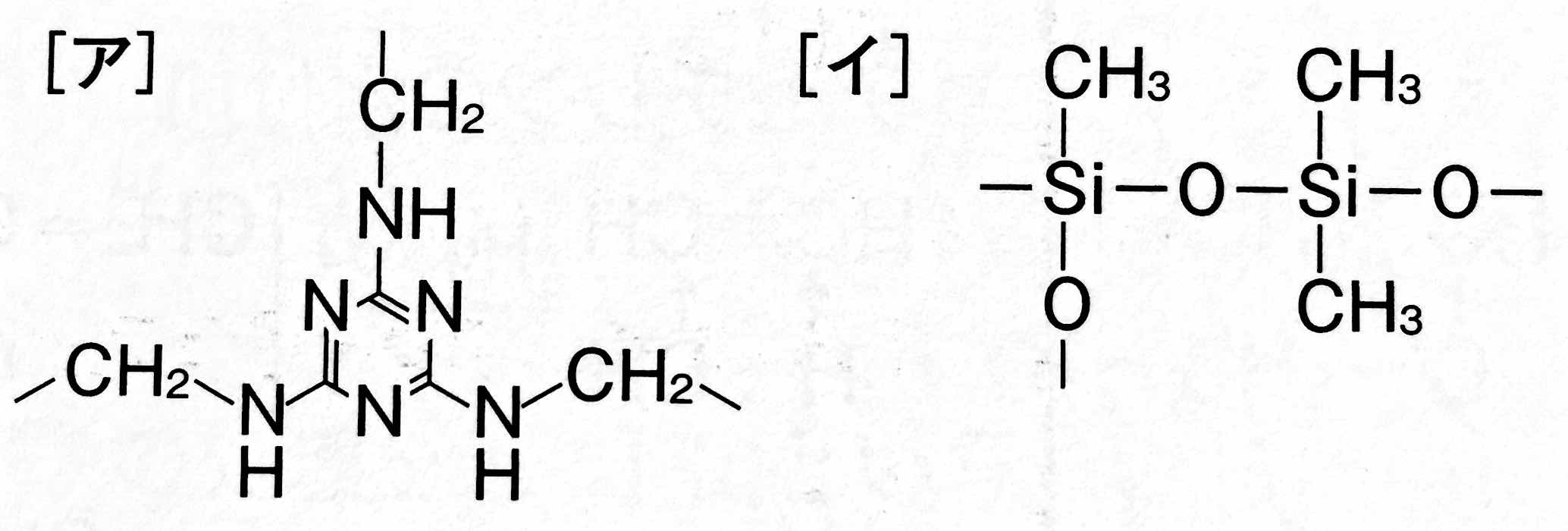 ア:メラミン樹脂,イ:シリコーン樹脂
